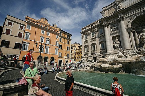 看到的便是羅馬最著名的許願池-特拉維噴泉(Fontana di Trevi).