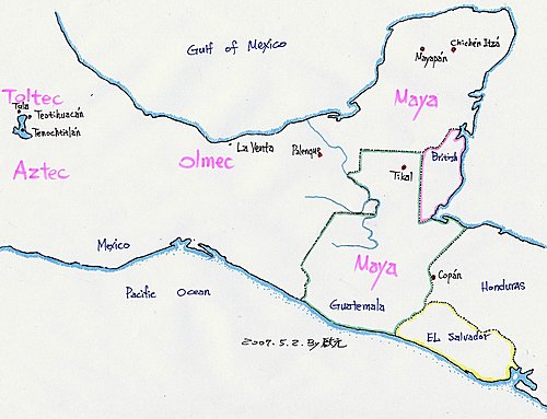 馬雅文明涵蓋著今日的墨西哥南部、貝里斯、宏都拉斯、及薩爾瓦多一帶,