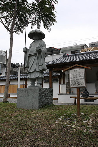 在左側會看到用來洗手的手水舍與空海大師的雕像,
