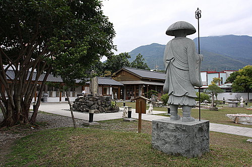 像是廣場的石燈籠、門口兩側造型怪異的石狗、刻有"開村三十周年記念/台灣總督 長谷川清"的石碑、及寺內奉祀的不動明王等,