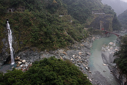 繼續沿著14號省道開個幾分鐘後就會看到橫跨在木瓜溪上的銅門發電廠吊橋。