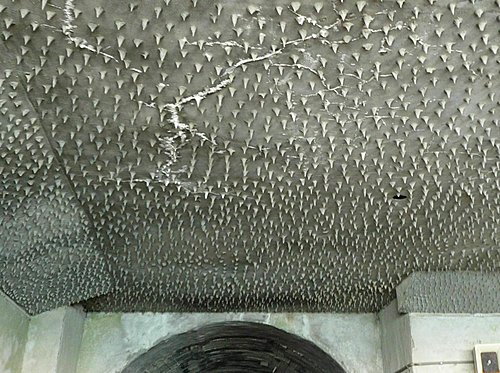 比較特別的是天花板上佈滿了尖錐狀的水泥刺,