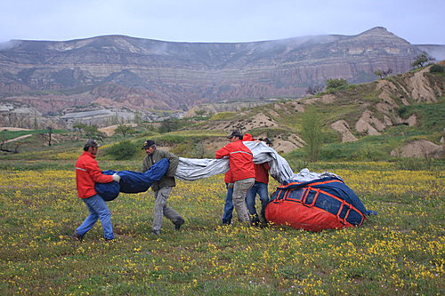 早上五點多就已經在卡帕多其亞的草地上等待。