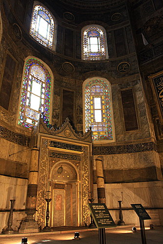 聖母子鑲嵌畫的下方是朝向麥加神龕(Mihrab),