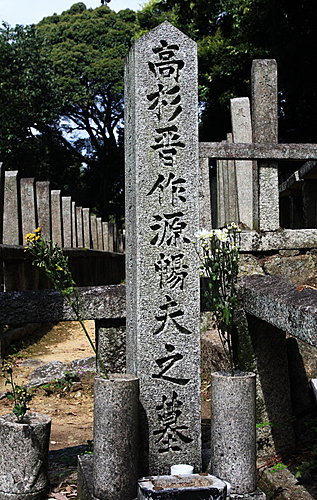 墓碑上刻著"故奇兵隊開闢總督高杉晉作",