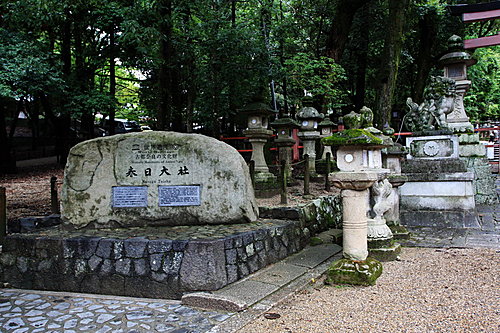 一旁的石頭上寫著"世界遺產 古都奈良の文化財 春日大社"。