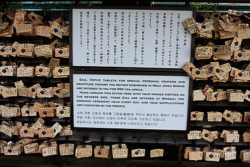 御社殿的廣場上可以看到掛著一堆木牌(繪馬)的祈願繪馬褂,