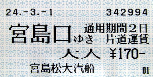 光是高速汽船的費用單程(廣島/元宇品->宮島)就要1800円,