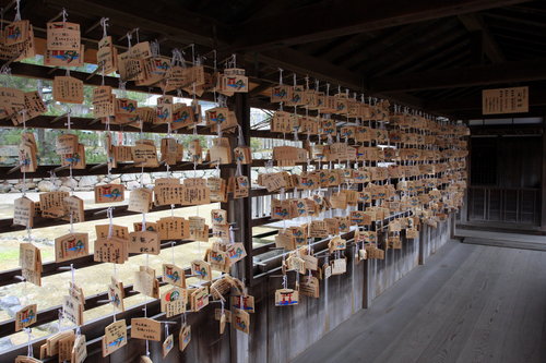 ▼嚴島神社的天神社(毛利隆元捐建)與掛著的繪馬