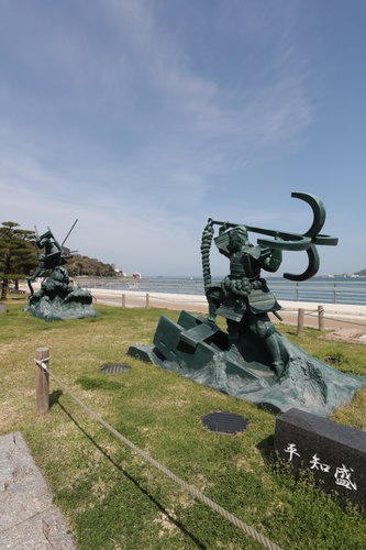 ▼壇之浦古戦場的平知盛與源義經雕像