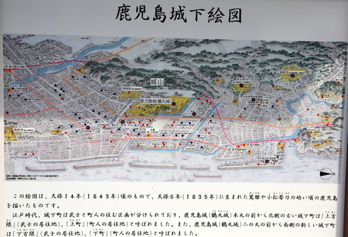 ▼維新ふろさとの道的導覽解說牌-鹿兒島城下的市區圖
